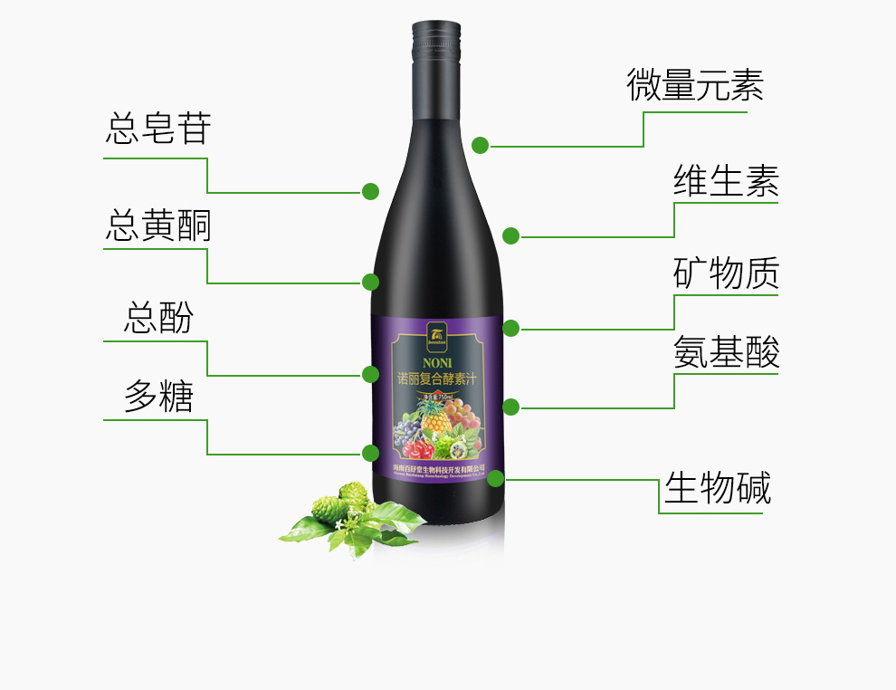 - 配料表: 诺丽水果复合发酵果汁